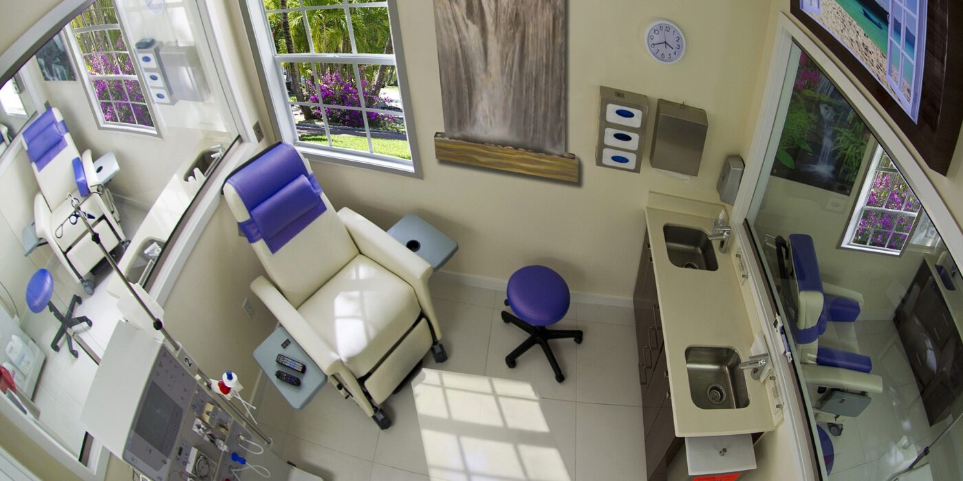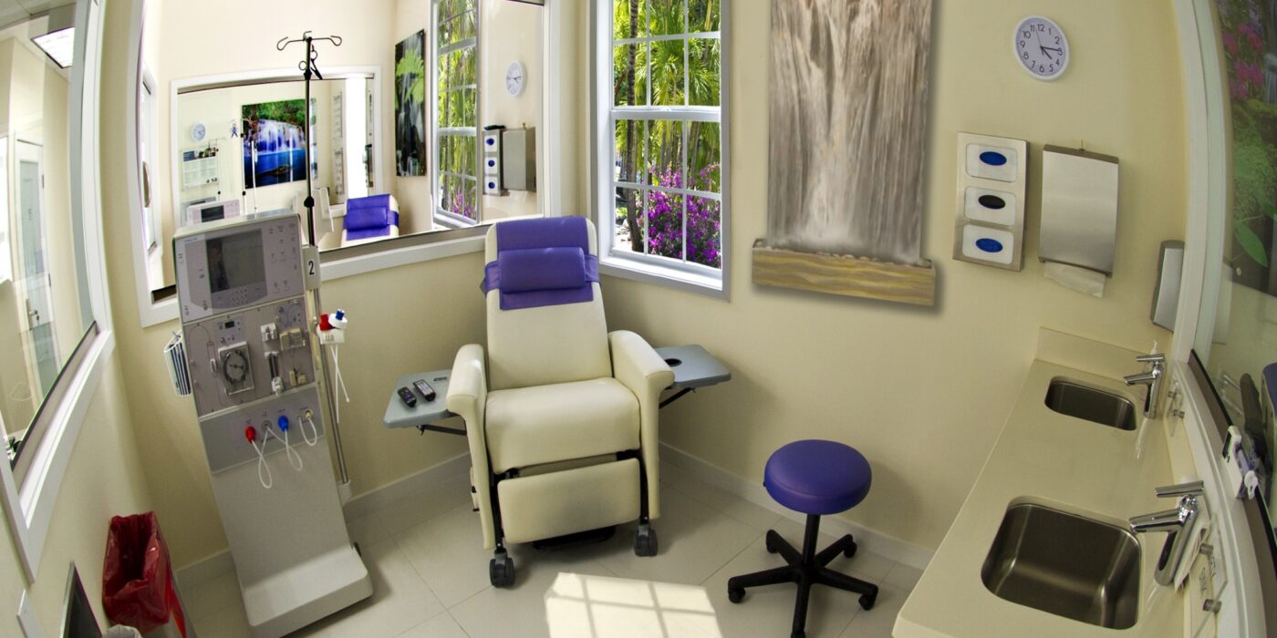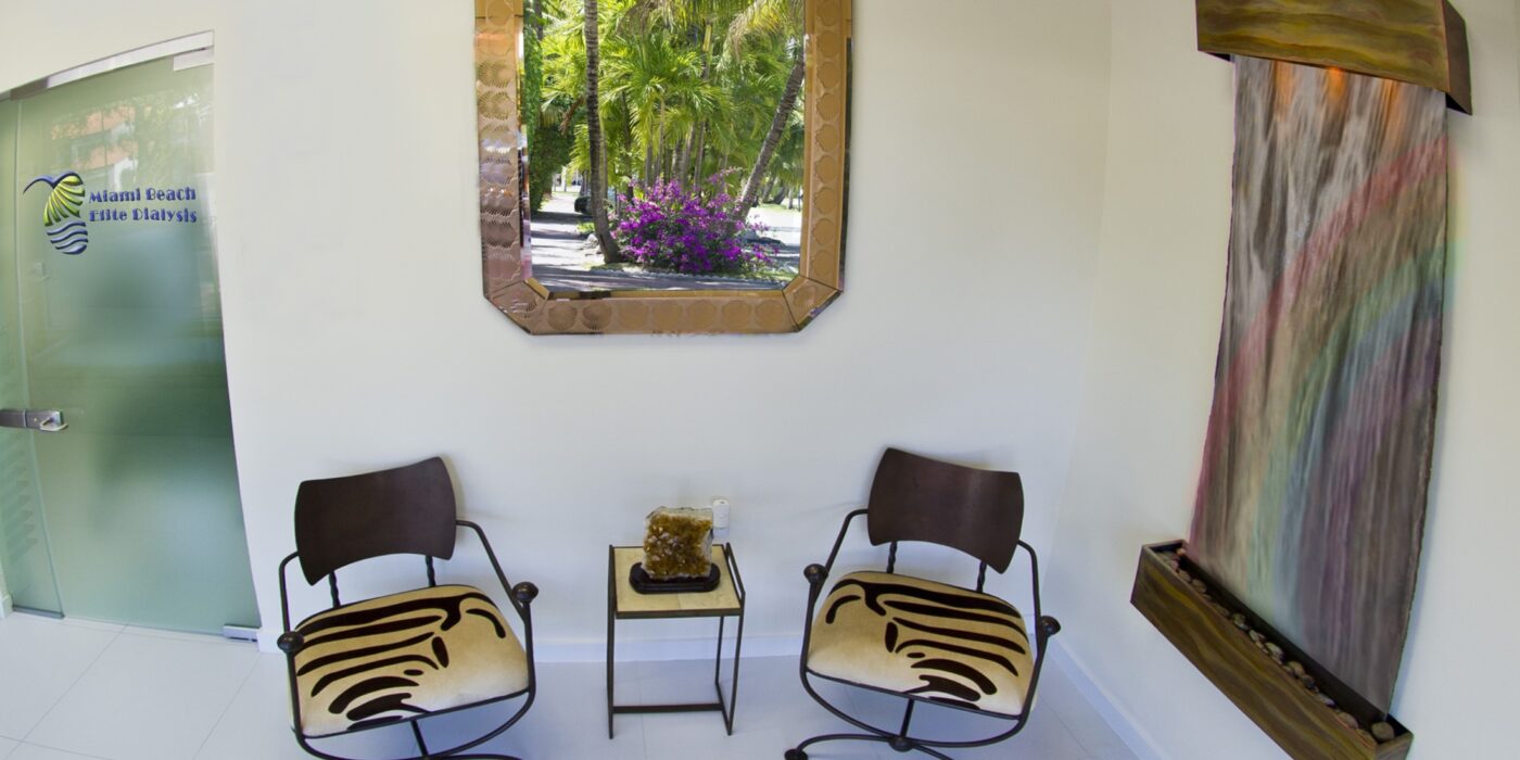 Miami Beach Elite Dialysis is a serene, private, state-of-the-art dialysis center. Every feature of our facility is geared toward the comfort of our dialysis patients. Anywhere from private treatment rooms, plush ergonomically designed chairs, to flat-screen smart televisions, nothing was spared thinking of the patient’s comfort and well-being. Dr. Leticia Adan’s vision was to create an ‘elite spa-facility’ catering to the needs of the dialysis patients with one-on-one detailed care. (One nursing staff/patient)